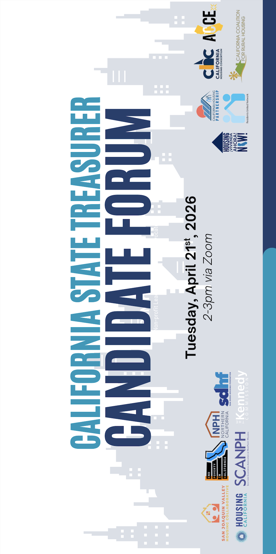 California faces a critical shortage of affordable housing, affecting individuals and families across our state. This event aims to bring together community members and constituents to learn about sustainable solutions and strategies to alleviate this crisis, and to hear from State Treasures candidates on the ways they believe they will do so once elected, with a specific focus on CDLAC, TCAC, and other housing financing responsibilities.